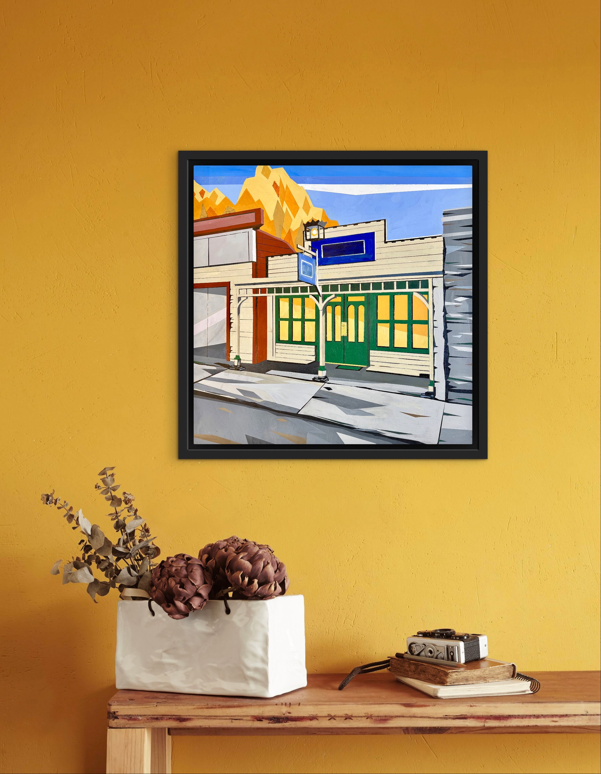 41x41cm original on wood, framing optional extra. Another work inspired by the charming historic building in this gold mining town.