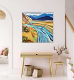 Original 1x1m painting in stretched canvas. Currently being exhibited at the Lakes district museum, Arrowtown.