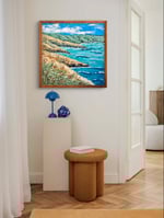 Painted with thick impasto paint, this work is an impressionist work depicting the rugged Banks Peninsula cliffs, near Taylor’s Mistake, Otautahi Christchurch. 71x71cm, framing optional extra.